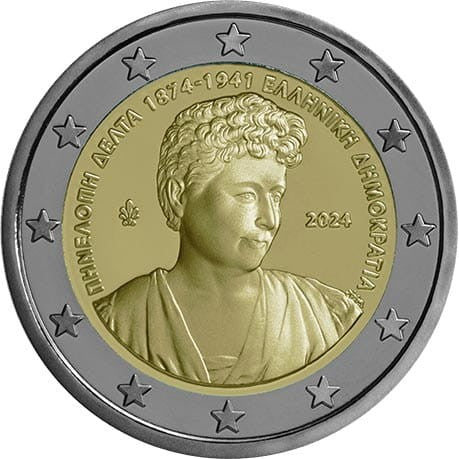Opis: Na monecie przedstawiono portret Penelope Delty. Wokół niego umieszczono napis „ΠΗΝΕΛΟΠΗ ΔΕΛΤΑ 1874–1941” (PENELOPE DELTA 1874–1941) i nazwę kraju „ΕΛΛΗΝΙΚΗ ΔΗΜΟΚΡΑΤΙΑ” (REPUBLIKA GRECKA). Po lewej stronie znajduje się palmeta (znak mennicy greckiej), a po prawej stronie – rok emisji. Penelope Delta była pionierką literatury dziecięcej w Grecji. Na jej książkach, które do dzisiaj nie tracą na popularności, wychowało się wiele pokoleń greckich dzieci. W otoku monety widnieje 12 gwiazd z flagi Unii Europejskiej.