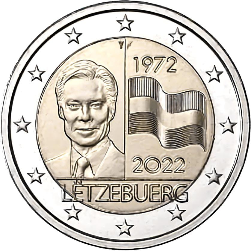 Opis: Motyw przedstawia po lewej stronie wizerunek wielkiego księcia Henryka, a po prawej – trójkolorową flagę Luksemburga. Powyżej flagi umieszczono rok „1972”, a poniżej – rok emisji „2022”. W dolnej części znajduje się nazwa kraju emisji „LËTZEBUERG”. W otoku monety widnieje 12 gwiazd z flagi Unii Europejskiej.