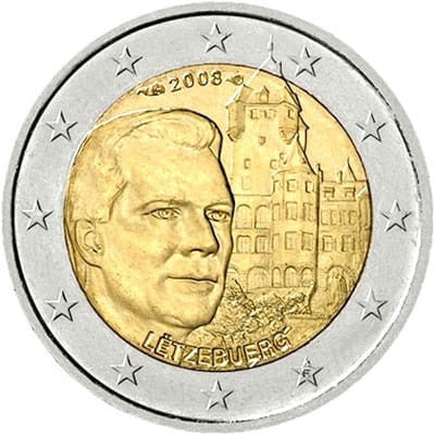 Opis: Moneta przedstawia wielkiego księcia Henryka na tle zamku Berg, jego oficjalnej rezydencji. W górnej części znajduje się rok emisji (2008), umieszczony pomiędzy znakiem mennicy i znakiem pracowni grawerskiej. W dolnej części monety widnieje słowo „LËTZEBUERG”. W otoku przedstawiono 12 gwiazd Unii Europejskiej.
