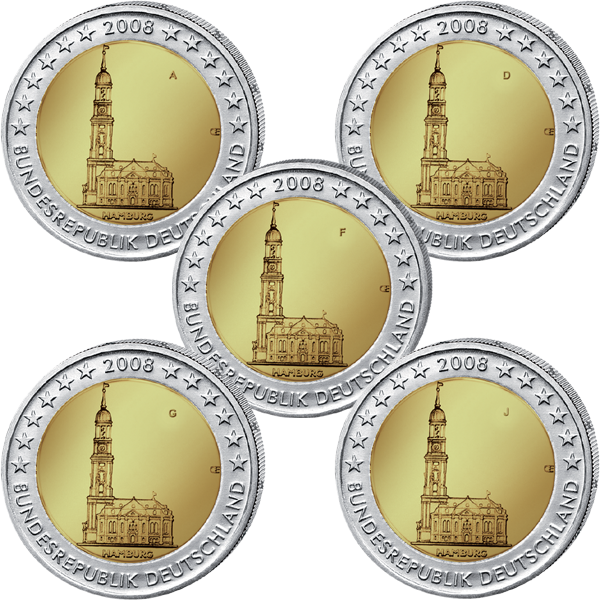 2 euro Niemcy x5 Hamburg Kościół św. Michała 2008