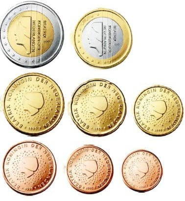 Holandia Holandia wybrała dwa projekty monet autorstwa Bruno Ninabera van Eybena. Oba wzory przedstawiają królową Beatrix.
