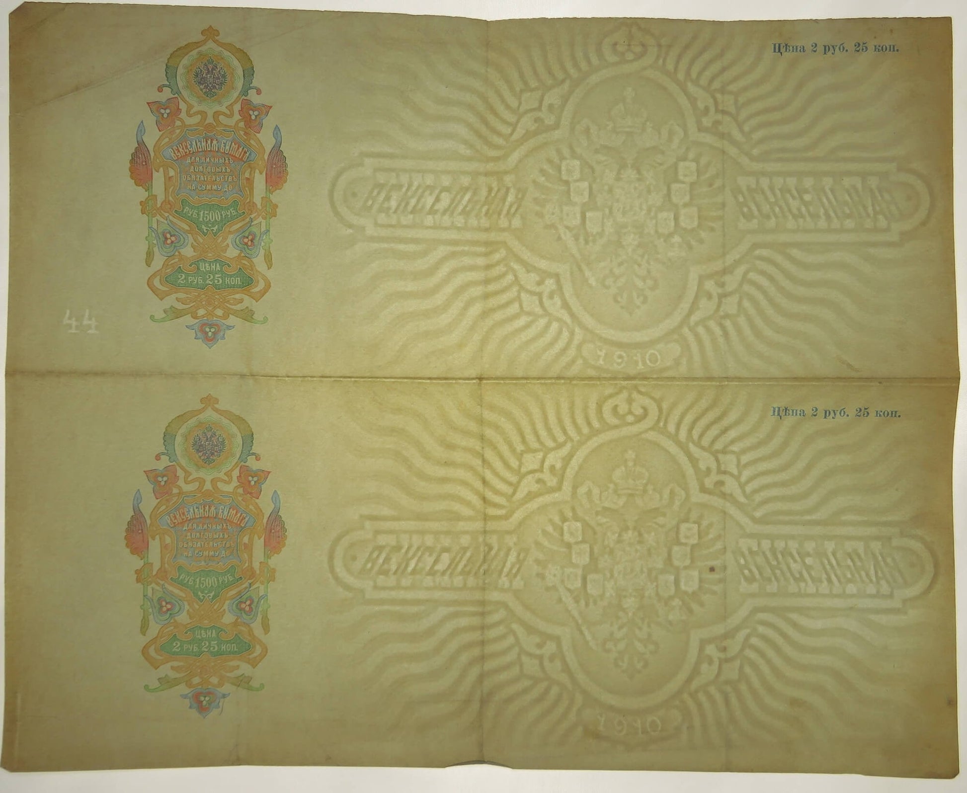 Rosja, weksel Rosji carskiej z opłatą 2 ruble 25 kopiejek na wartość 1500 rubli, 1910