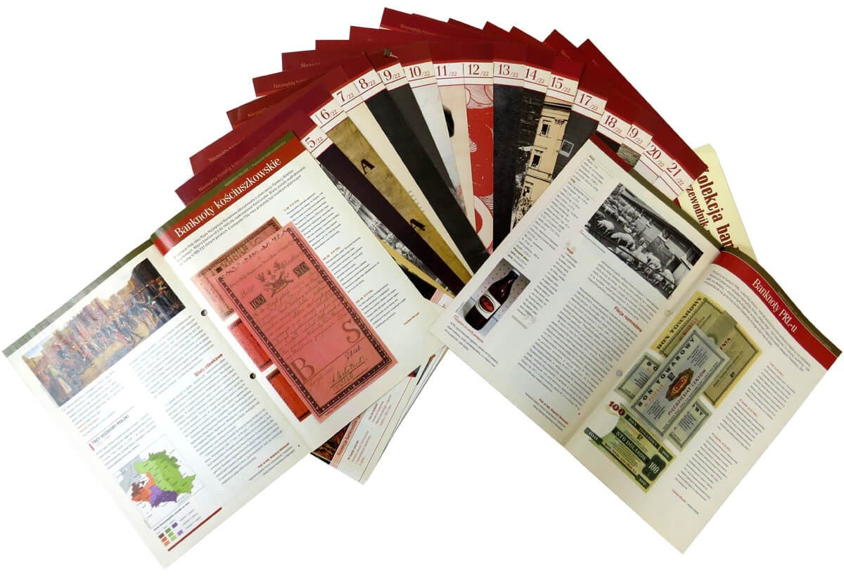 Zestaw 21 reprintów / reprodukcji rzadkich polskich banknotów obiegowych w etui